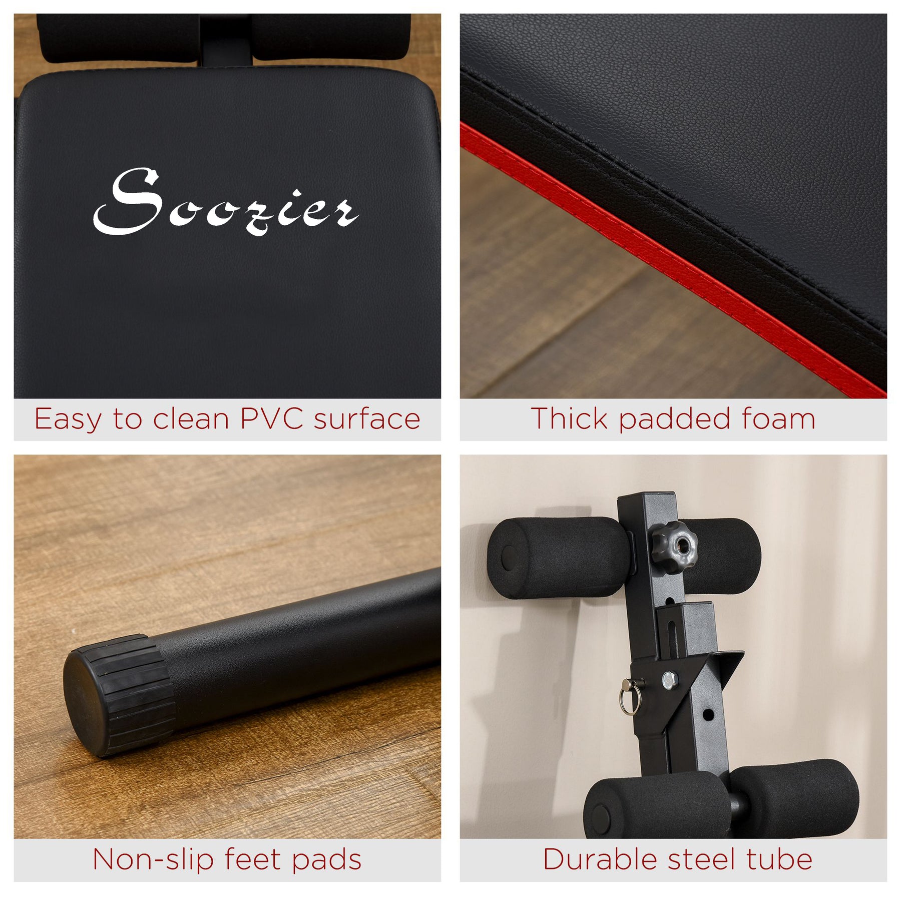 This Soozier sit-up bench will be your best choice to get the perfect shape for you pratise at home or office. It can be used to work out your waists, abs, legs, and arms in daily exercise. Solid steel construction in black finish supports up to 242lbs in total. Compact and foldable design which is easily fold the bench and keep it in storage after you work out. Spend just a few time a day on this sit up exercise equipment, and you'll start to see results and get the dream body you want.