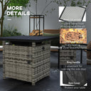 Outsunny Outdoor PE Rattan Propane Fire Pit Table, 50,000 BTU Pulse-Ignition Wicker Fire Table, Mixed Grey