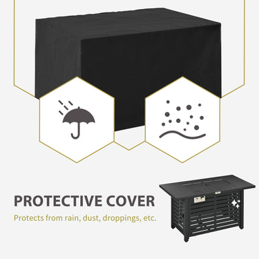 Outsunny Propane Gas Fire Pit Table, Outdoor Firepit with 43" Steel Tabletop and Lid, 50,000 BTU Pulse Ignition Fire Table w/ Stainless Steel Burner, Glass Wind Guard, and Cover