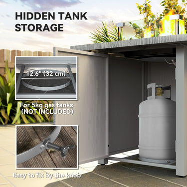 - • 40,000 BTU burner, gas tank not included. Magnetic door on tank compartment
