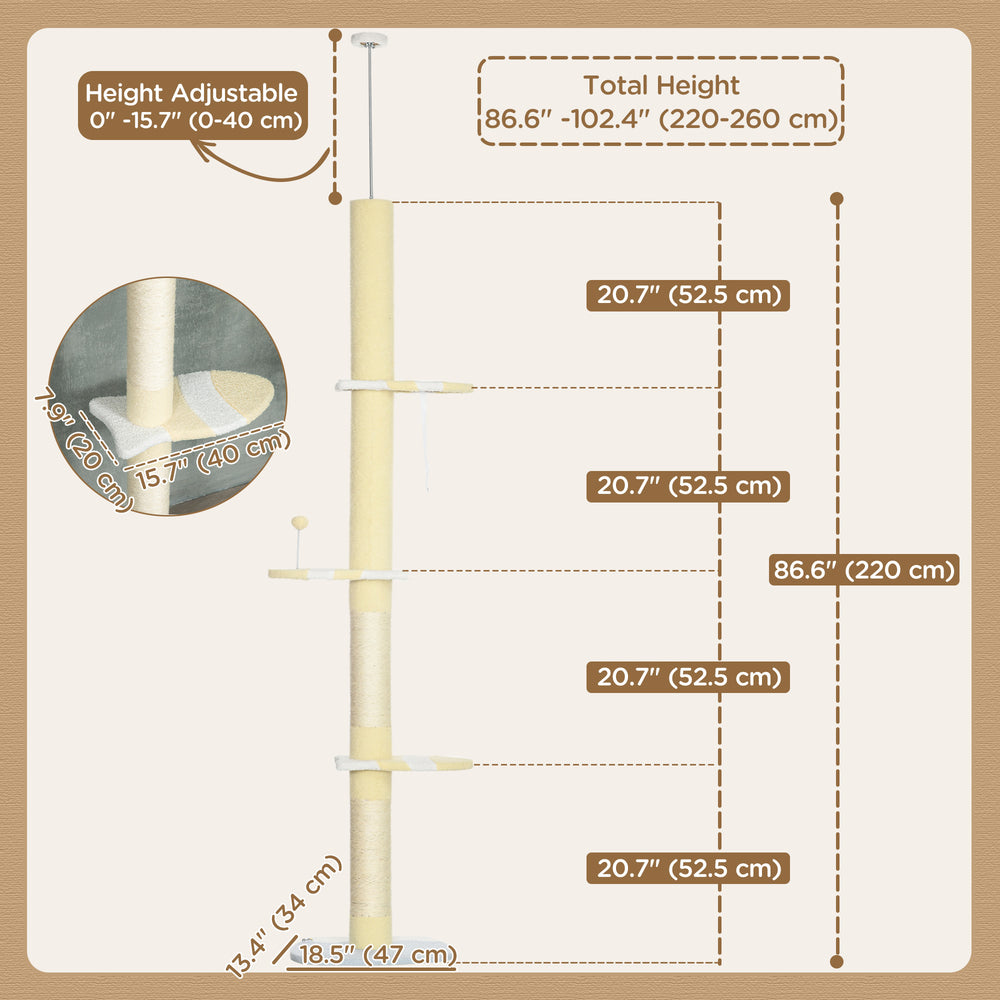 PawHut 8.5ft Cat Climbing Tree 5-Tier Kitty Activity Center with Scratching Post Brown and White