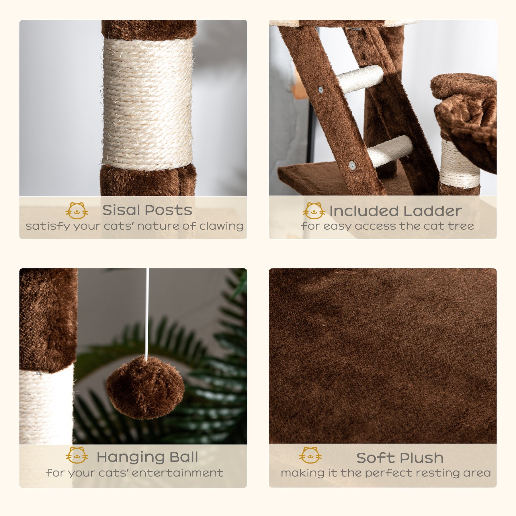 - • Material: Particle Board, Sisal Rope, Plush