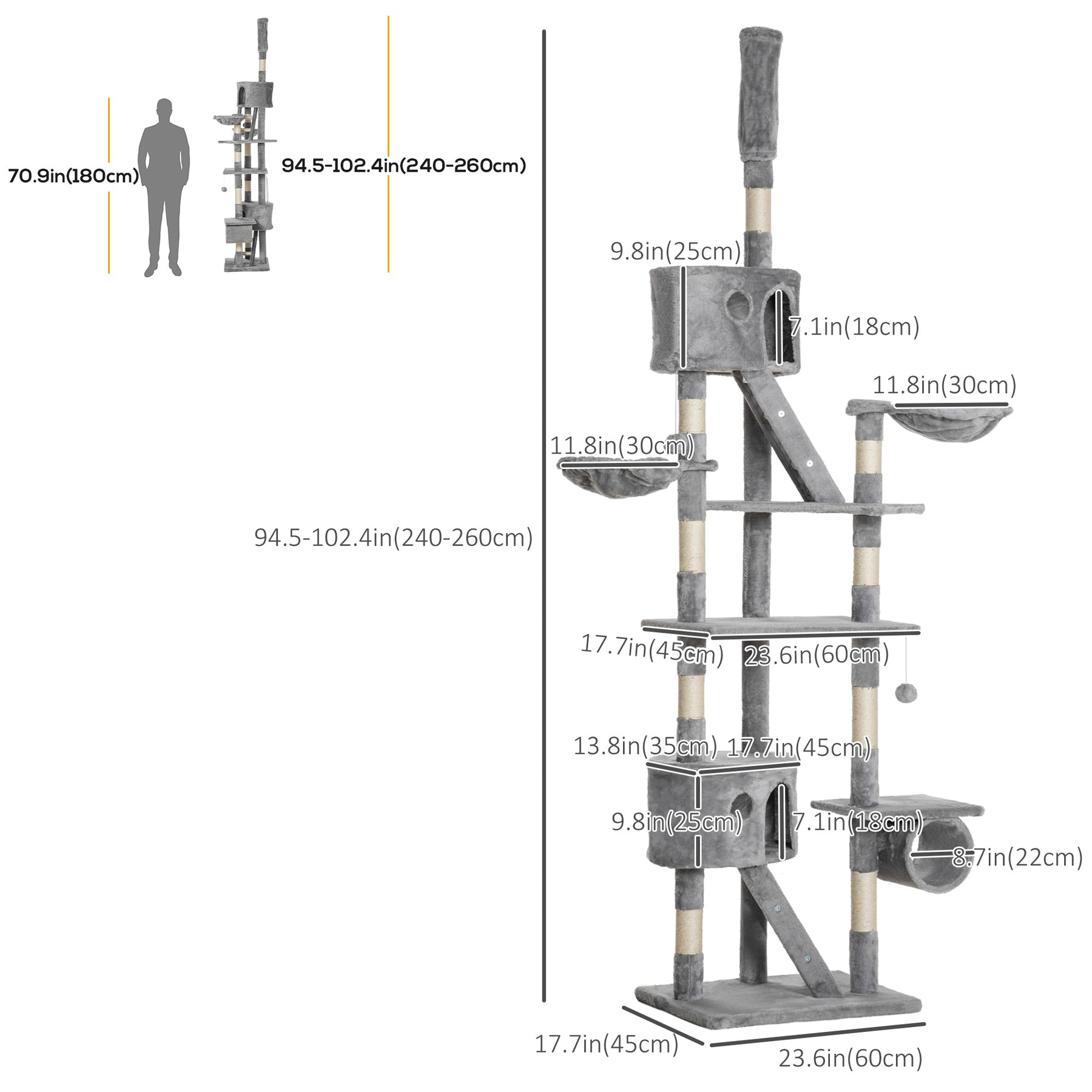 - • Overall Dimension: 23.6"L x 17.7"W x 94.5"-102.4"H