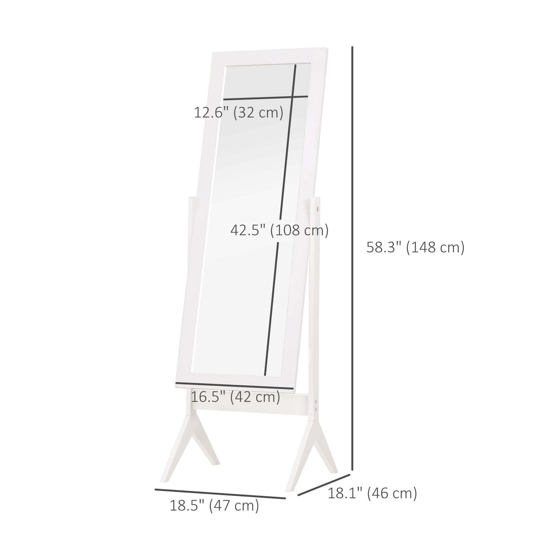 Our free standing big mirror from HOMCOM might be a good choice for you. With 2 provided tilt bolts, this floor length mirror can be adjusted in 2 different angles to enable a better view from head to toe. Classic design makes it a perfect match with your existing decor and can be installed whether in the living room or in the bedroom. A must-have for every fashionista!