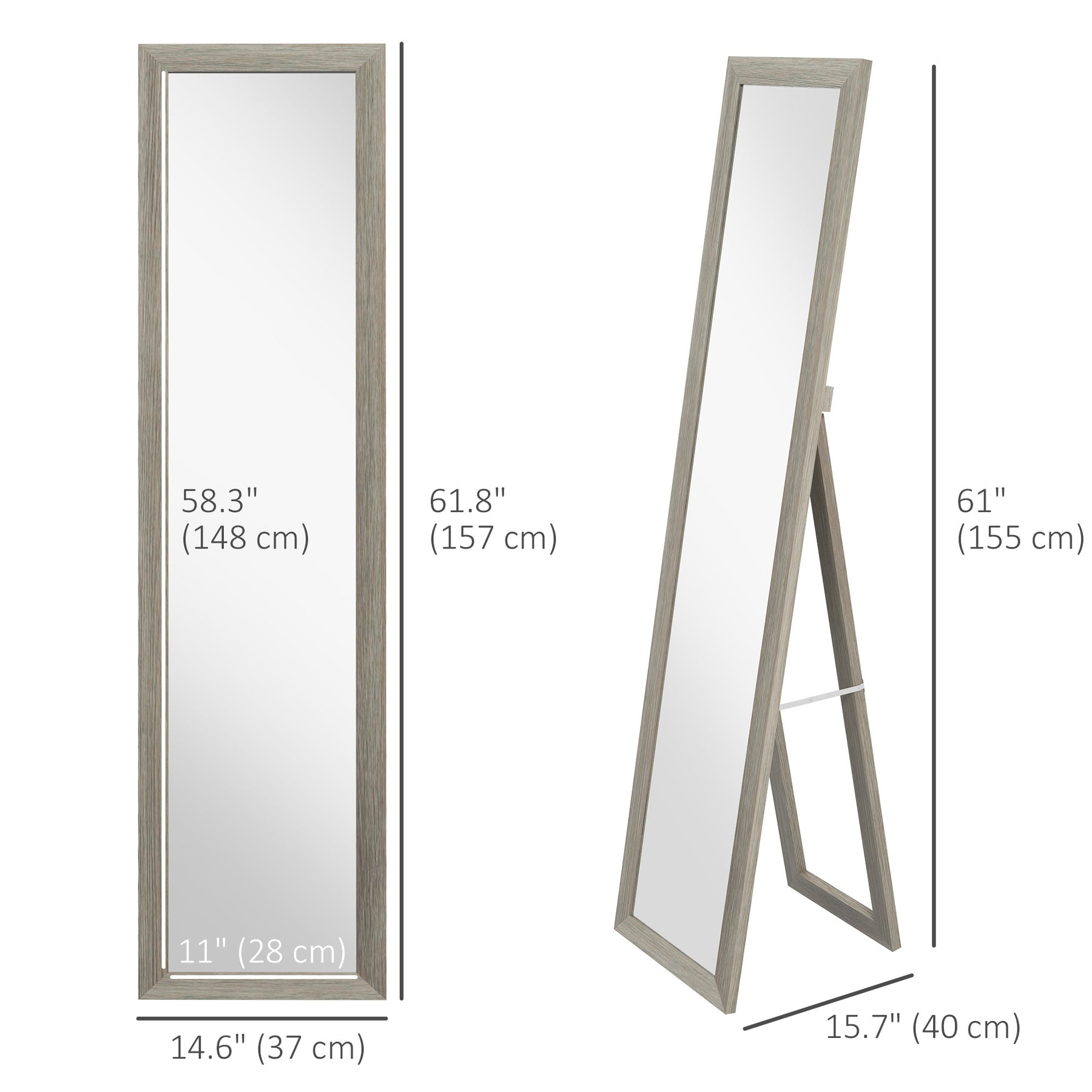 - • Mirror Size: 11" W x 58.3" H (28 x 148 cm)