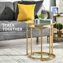 HOMCOM Set of 2 Nesting Coffee Tables with Metal Base, Round Side Table with Tempered Glass Tabletop for Living Room, Bedroom, Gold