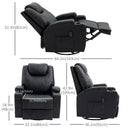 HOMCOM Massage Recliner Chair, Swivel Nursery Rocker Chair, Manual Reclining Sofa with 8 Vibration Points, PU Leather, Cup Holders, Side Pockets, for Living Room, Black