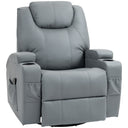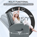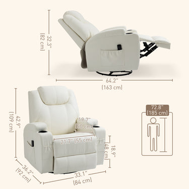Enjoy a relaxing vibrating massage with HOMCOM recliner chair with massage. 8 vibration motors target zones in the upper and lower back, thighs and calves, with 8 different modes, you can activate all at once or select individually. Stable and supportive with a metal frame, 360° swivel seat, adjustable recline and the ability to hold up to 330lbs. A remote control and two cupholders are included for added convenience. Release the stress of a long day with this recliner armchair.