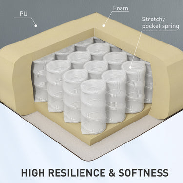 - • Overstuffed, high-density foam padding with a pocket spring system offers a cozy experience