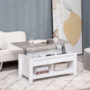 HOMCOM Lift Top Coffee Table with Hidden Storage Compartment and Open Shelves, Lift Tabletop Pop-Up Center Table for Living Room, White