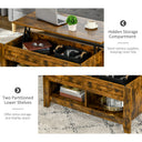 Add a chic, modern style and function to your living room or office with this HOMCOM lift-top coffee table. The extending table top lifts up and out to create a convenient floating desk, revealing a hidden storage compartment below. Built from particle board, it is built to withstand long term use. Stylish and functional, this pop up coffee table is perfect in front of a couch or in a home office, helping to provide multiple work surfaces and storage options.
