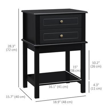 HOMCOM Modern Sofa Side Table, Accent End Table with Drawers and Storage Shelf, Nightstand for Bedroom Living Room, Black
