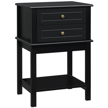 This HOMCOM small side table is ideal if you require additional storage but have limited space to work with. Use it as a nightstand next to your bed or as a side table in your living room. The open tabletop, drawers, and bottom shelf provide ample storage while occupying little floor space. If there is a spill, the elevated base protects your items from getting wet. With this HOMCOM end table with storage, you can add more convenience to your home.