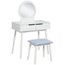 HOMCOM Makeup Vanity Desk with Round Mirror and 2 Drawers, Dressing Table with Cushioned Stool Set for Bedroom (White)