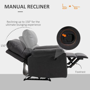 HOMCOM Recliner Chair, Manual Reclining Chair with Footrest, Padded Seat for Living Room, Bedroom, Study, Dark Grey