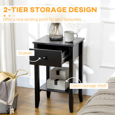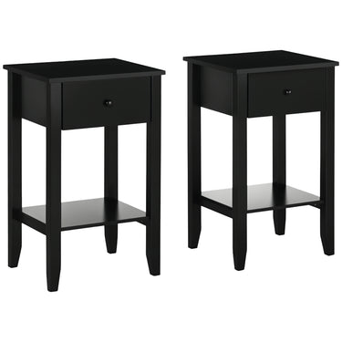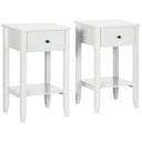 HOMCOM Side Table Set of 2, End Tables with Drawer and Bottom Shelf, 2-tier Nightstand for Bedroom, Living Room, White