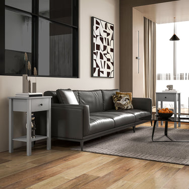 This side table from HOMCOM, with its simple design and classic colour scheme, fits in with any room décor and provides a comfortable and homey feel. The sofa side table includes a drawer and a lower shelf for storage and allows you to organize your items. This surprisingly spacious table is large enough to place a lamp, your nightly reading material, or an alarm clock. It is a great storage option for every home.