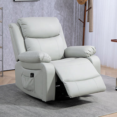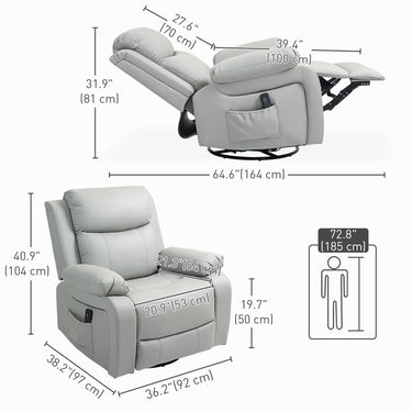 Dive into comfort with your soft recliner chair with massage from HOMCOM! Our fantastic reclining chair offers you a cozy experience. With a 360-degree swivel function, this swivel recliner can rotate in any direction—a wired remote controls eight vibration points on the back, waist, thighs, and legs. The heavily padded armchair can recline 150 degrees, providing superior comfort and support.