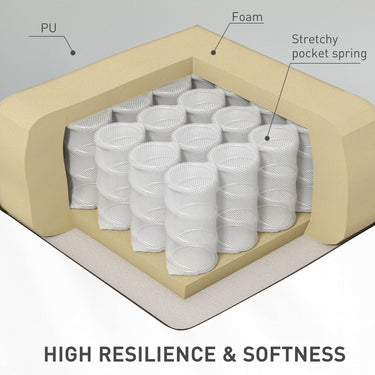 - • Overstuffed, high-density foam padding with a pocket spring system offers a cozy experience