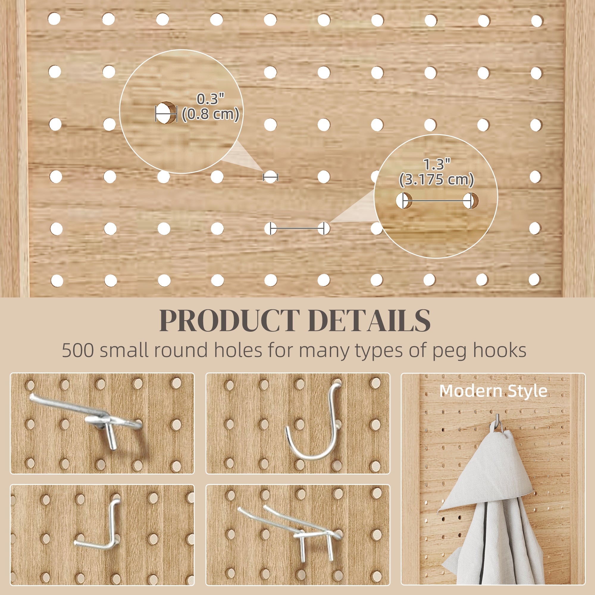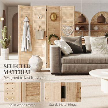 HOMCOM 5.6 Ft. Tall 4-Panel Room Divider, Pegboard Panel Freestanding Folding Privacy Screen Panels, Partition Wall Divider for Indoor Bedroom Office, Natural