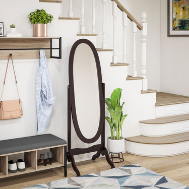 HOMCOM Floor Standing Mirror Full Length Mirror with Adjustable Angle Oval Frame for Dressing Room Bedroom Living Room White