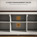 Enhance your living room with the entertainment TV stand from HOMCOM. This modern farmhouse gem features a 1" (25 mm) thick, 43.3" (110 cm) long tabletop, suitable for your 50" TVs. With barn doors and retro black metal accents matching a rustic brown top, it adds a touch of charm to any rooms. Conceal clutter, display decor, and elevate your entertainment experience with its spacious design. Transform your space now with HOMCOM media stand.