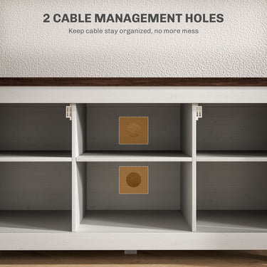 HOMCOM Farmhouse TV Stand for up to 50" TV, TV Cabinet with Barn Doors, Cable Management for Living Room, Distressed White