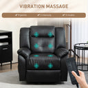 Dive into comfort with our massage recliner chair from HOMCOM. Featuring a 360-degree swivel function, this PU leather recliner chair can rotate in any direction. It has eight vibration points on the back, waist, thighs, and calves, all controlled by a remote. The thick backrest can recline 150 degrees, providing excellent comfort and support. Once you sit, you'll want to stay put!