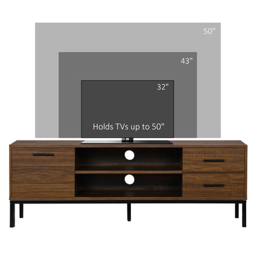 HOMCOM TV Stand for TV up to 50 Inches, TV Cabinet with Door, Open Storage and Drawers, TV Table with Steel Legs, Dark Walunt