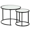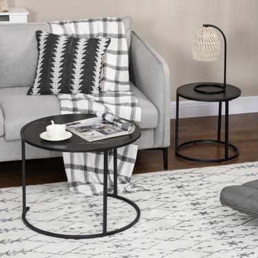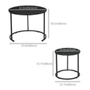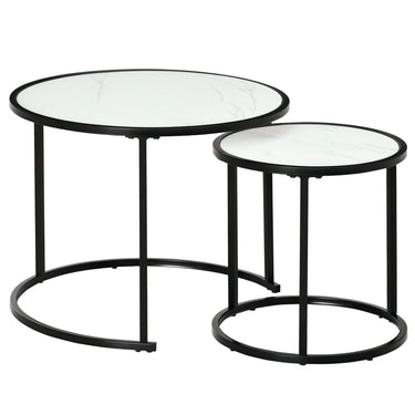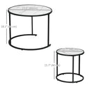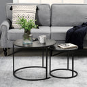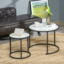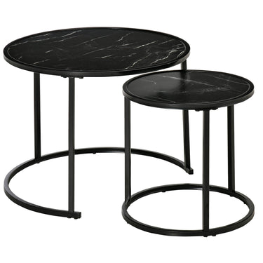 HOMCOM Round Nesting Coffee Table Set of 2, Stacking Modern Accent Tables with Faux Marble Tabletop and Metal Frame for Living Room, Black
