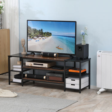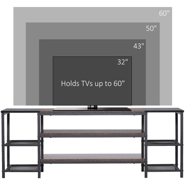 HOMCOM Industrial TV Cabinet for TVs Up to 60", TV Stand with Open Shelf Storage, Media Console with Steel Frame, Rustic Brown