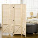 HOMCOM 4.7' 4 Panel Wooden Room Divider with Pegboard Display, Folding Privacy Screen for Home Office, Natural