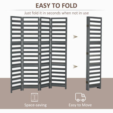 HOMCOM 5.6 Ft. Tall 4-Panel Room Divider, Louvred Pattern Freestanding Folding Privacy Screen Panels, Partition Wall Divider for Indoor Bedroom Office