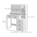 Transform your beauty routine into an enchanting experience with the HOMCOM make up table! Revel in the ample storage of a large drawer and three petite ones, complemented by six open shelves to showcase your perfumes and cosmetics. Add a touch of Hollywood glamour with a big, illuminated mirror, featuring 10 dazzling LED bulbs. Designed to bring elegance and ease to your bedroom or dressing space!