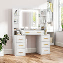 HOMCOM Makeup Vanity Table with Mirror and Lights, Modern Dressing Desk with 7 Drawers, 8 Shelves, 3 Lighting Modes, White
