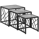 HOMCOM Nest of Tables Set of 3, Square Coffee Table Set with Metal Frame for Living Room, Bedroom, Grey