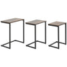 Bring style to your day-to-day life with HOMCOM's nesting side tables. The accent table features a rustic wood grain tabletop and black steel frame, making it fit with any décor. The nested design allows the sofa tables to be used separately or tucked in. Also, put the C-shaped end table under the sofa or bed. In addition, they are stackable to save space when not in use. Enjoy this beautiful side table set during your party or afternoon tea!