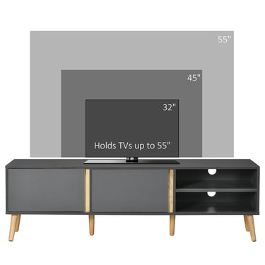 Upgrade your living room with this HOMCOM TV stand with storage. This TV console does more than holding your TV, it has two enclosed cupboards and open shelves to provide large storage space for your favourite movies, a collection of video games or books you love to read. Additionally, there are two cable holes for organising wires without the mess. Without a doubt, this TV unit will be a perfect companion for your relaxing moments.