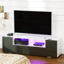 Take HOMCOM TV stand with storage to make your home fashionable! This media center is stylish and simple with clean lines and glossy white colour that complete the look and decorate any home style. 4 flashing modes and 16 light colours add more exciting elements to your life. Storage shelves and cupboards with doors make your home cleaner. It's a perfect gathering piece and anchor for your living space!