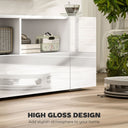 Take HOMCOM TV stand with storage to make your home fashionable! This media center is stylish and simple with clean lines and glossy white colour that complete the look and decorate any home style. 4 flashing modes and 16 light colours add more exciting elements to your life. Storage shelves and cupboards with doors make your home cleaner. It's a perfect gathering piece and anchor for your living space!