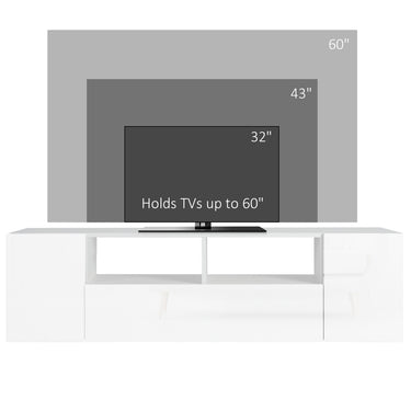 HOMCOM TV Stand for TVs up to 60", TV Unit with LED Lights, Storage Shelves and Cupboards, 53.9" x 13.8" x 16.5", White