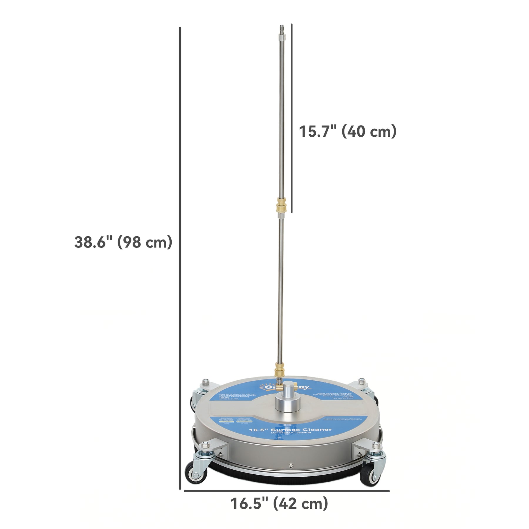 No dirt, no fatigue! This 16.5''/42 cm power washer surface cleaner from Outsunny will free you from the tedious and exhausting task of cleaning driveways, decks, sidewalks and other places easier. It's wider and cleans more efficiently and faster than cleaning with a nozzle alone. Simply connect it to your home pressure washer via the included quick connector, and you can easily clean your places with this wheeled surface cleaner that can be flexibly moved!