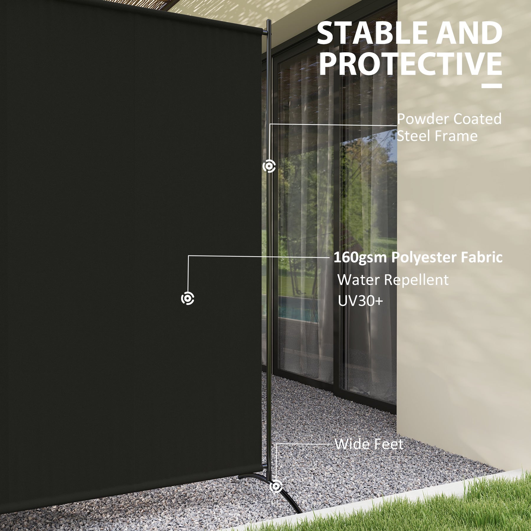 Transform your outdoor space with the Outsunny single panel room divider! This lightweight divider offers an instant privacy solution, doubling as a shade with UV30+ protection and water-repellent fabric. Its outdoor-ready steel frame with wide feet withstands the elements and offers stability. Enjoy your space in peace in your home or garden!