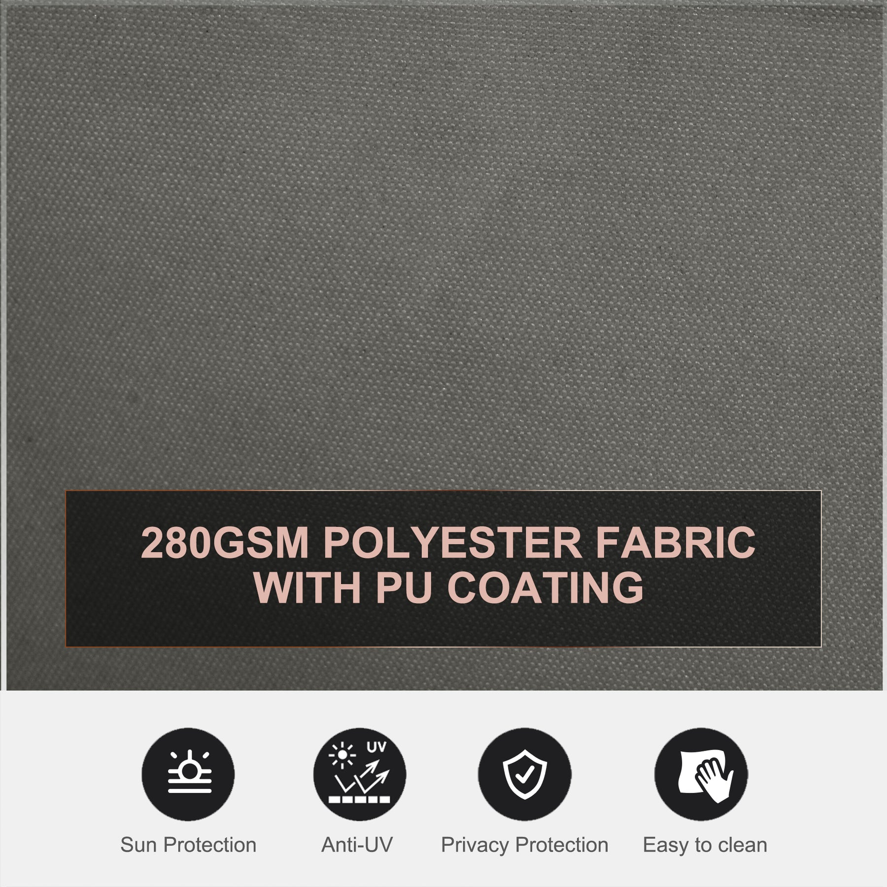 - • Polyester fabric with PU coating is breathable, UV-resistant, and easy to clean