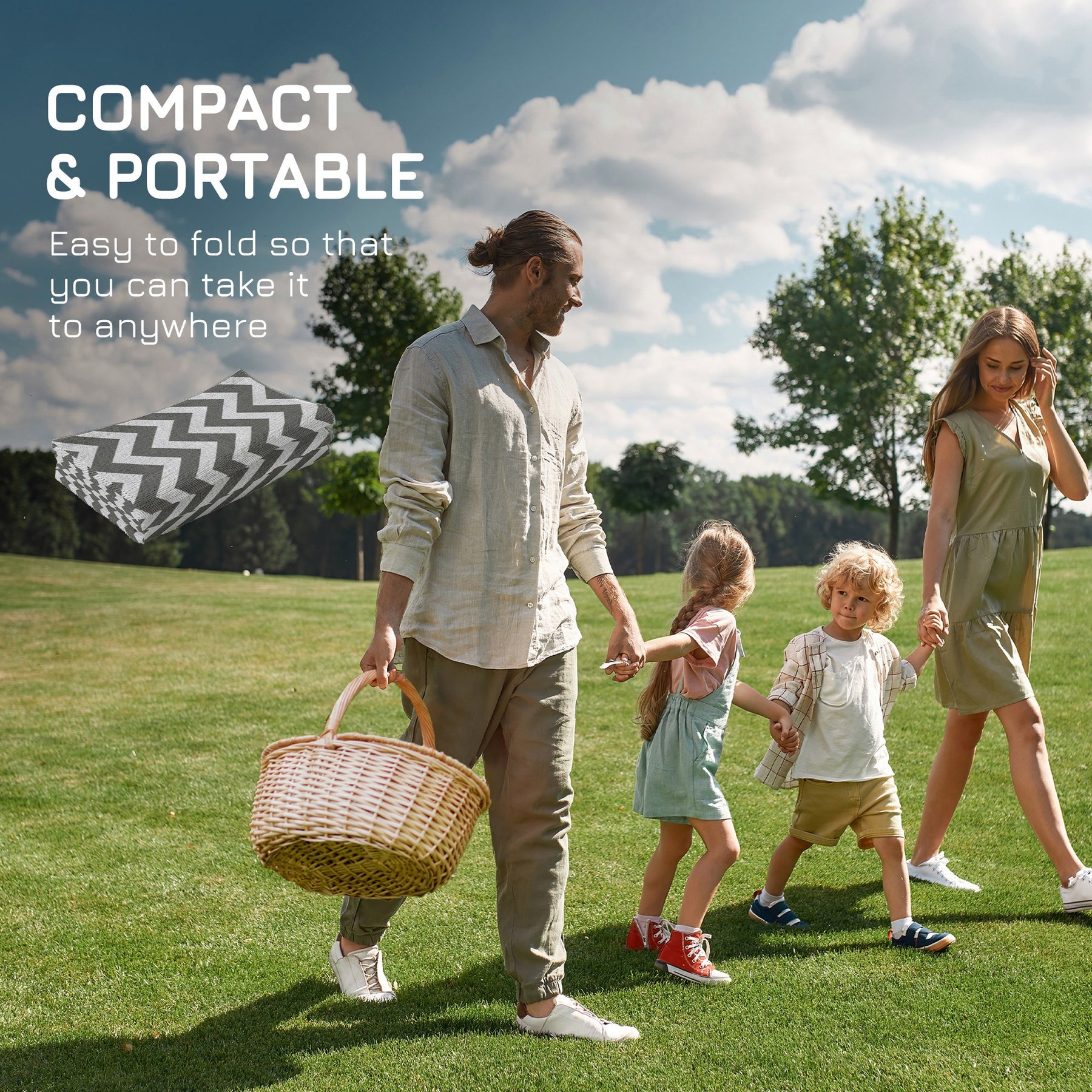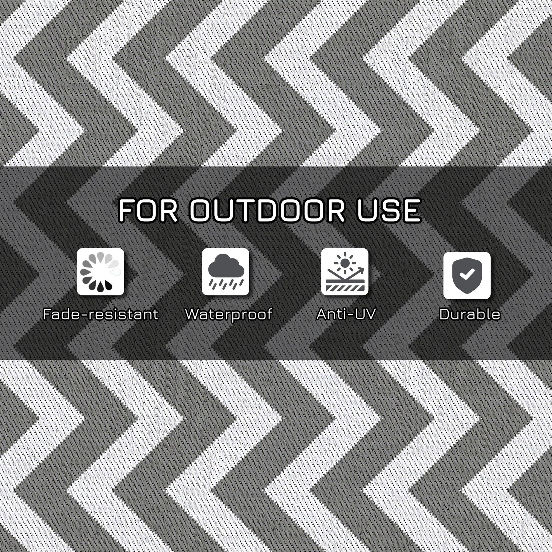 Set up your activity base for camping or other outdoor activities. The waterproof rug is specially designed for outdoor use like camping, picnic, road tour, etc. It's widely suitable for camper vans, RVs, the beach, gazebos, patios, playrooms or anywhere you need it. The tough material resists water and UV, which is anti-fading and protects from ground moisture. Furthermore, flip it over to update the look and style! Be the envy of your friends.