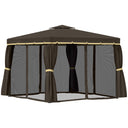Outsunny 10' x 10' 2-Tier Outdoor Gazebo Canopy Tent with Zippered Mesh Sidewalls, Aluminum Frame for Patio, Backyard, Coffee