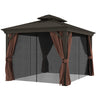 Outsunny 10' x 12' Outdoor Hardtop Gazebo with Galvanized Canopy & Netting Sidewalls for Lawn, Backyard, Dark Brown