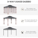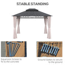 Outsunny 10' x 12' Outdoor Hardtop Gazebo Canopy w/ Double PC Roof, Steel Frame, Nettings, Curtains for Garden Lawn Deck, Khaki