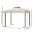 Outsunny 10' x 10' Patio Gazebo Outdoor, Canopy Shelter with Double-tier Roof, Pavilion Sidewalls for Garden Events, Cream White