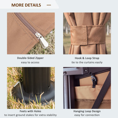 Outsunny 10' x 10' Outdoor Patio Gazebo Double Soft-top Garden Shelter Tent with Curtains, & Mesh Screen Drapes, Brown